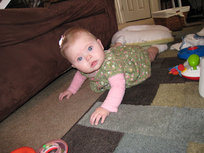 Our Little Maddie is getting closer and closer to crawling! :) She definitely has the desire to move, but is still trying to learn how to get those legs to move the way she wants them to! We're giving her a LOT of floor time and she seems to be progressing each day! It's hard to believe how quickly they learn and grow. She's already 7 months! Crazy how time flies.